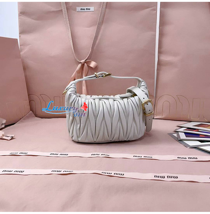 미우미우 특유의 마테라쎄 디테일이 돋보이는