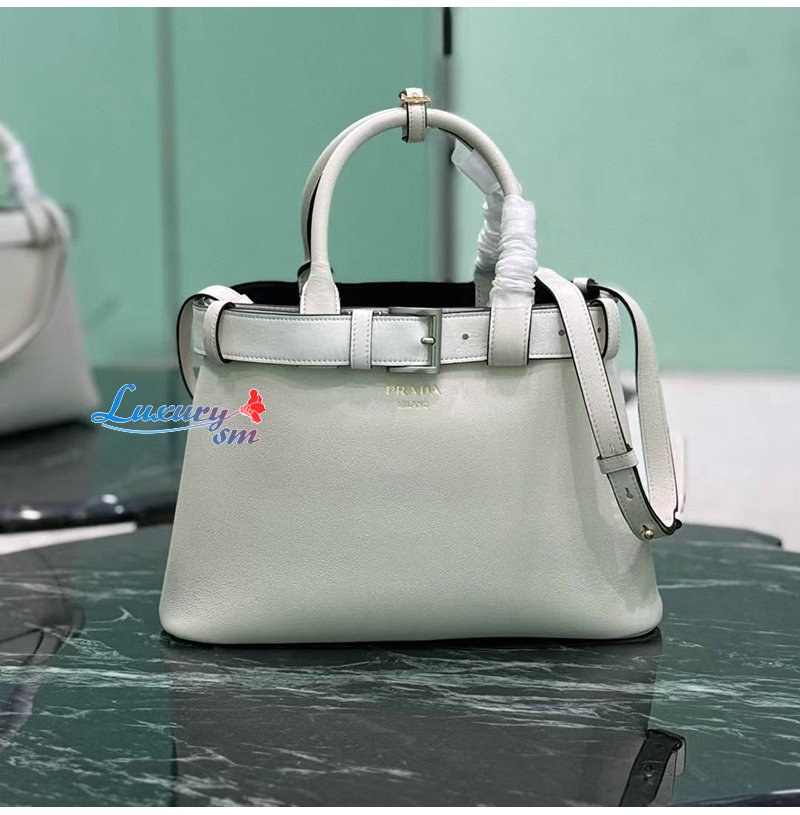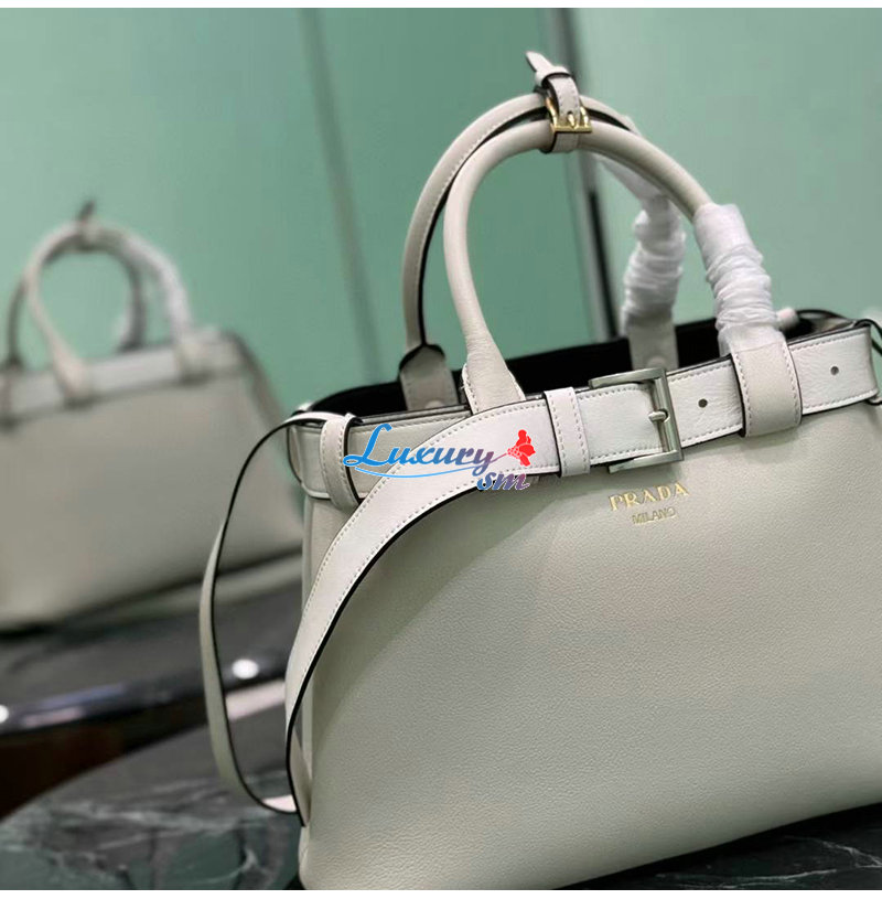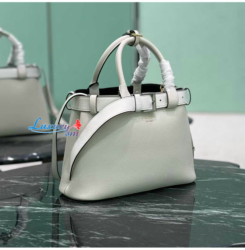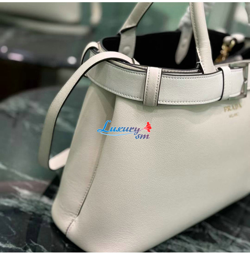 [스페셜오더]PRADA-1BA434 프라다 화이트 버클 미디엄 가죽 핸드백