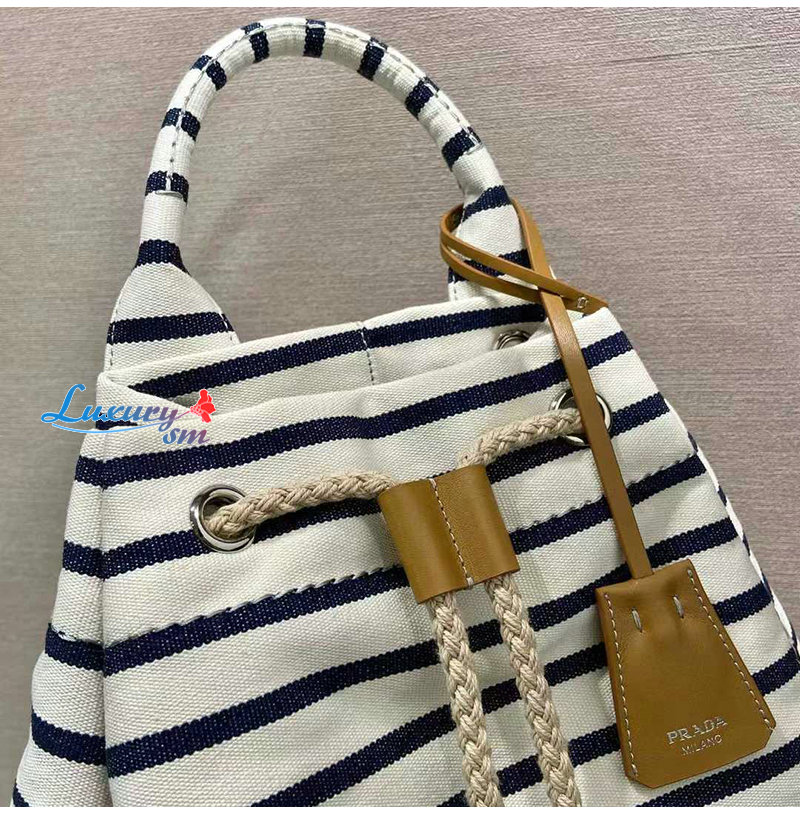 [스페셜오더]PRADA-2VY011 프라다 화이트/블루 스트라이프 캔버스 드로스트링 더플백