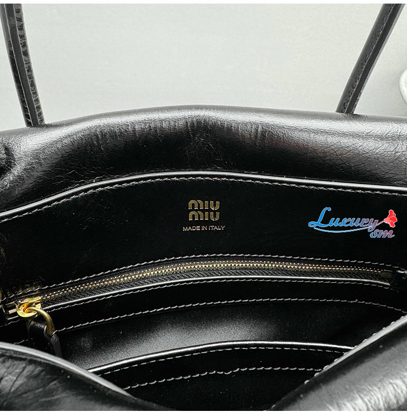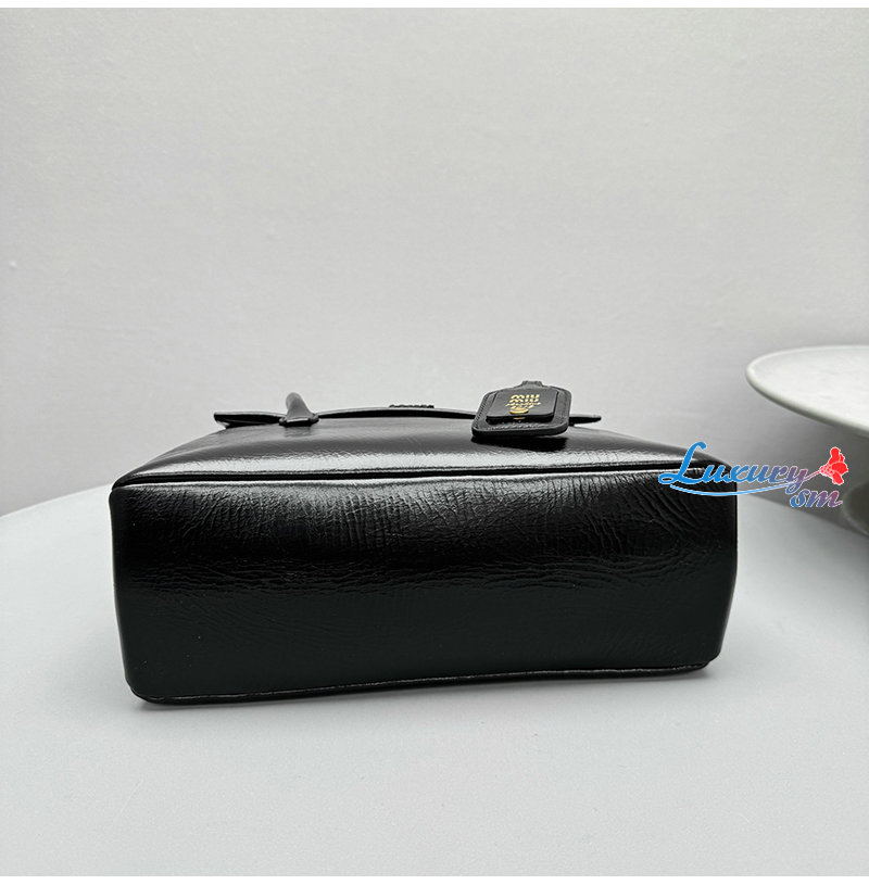 [특급스페셜오더]MIUMIU-5BA302 미우미우 광택 가죽 Solitaire 솔리테르 핸드백 블랙