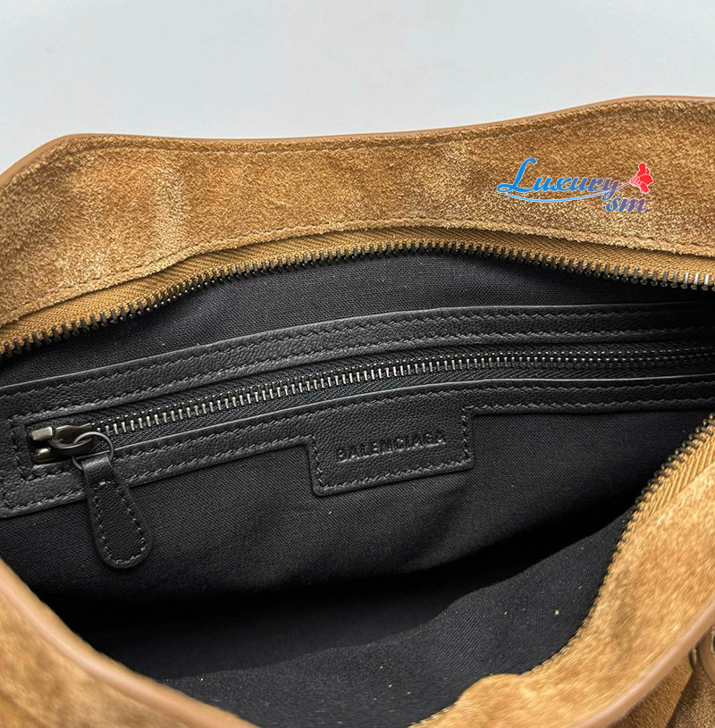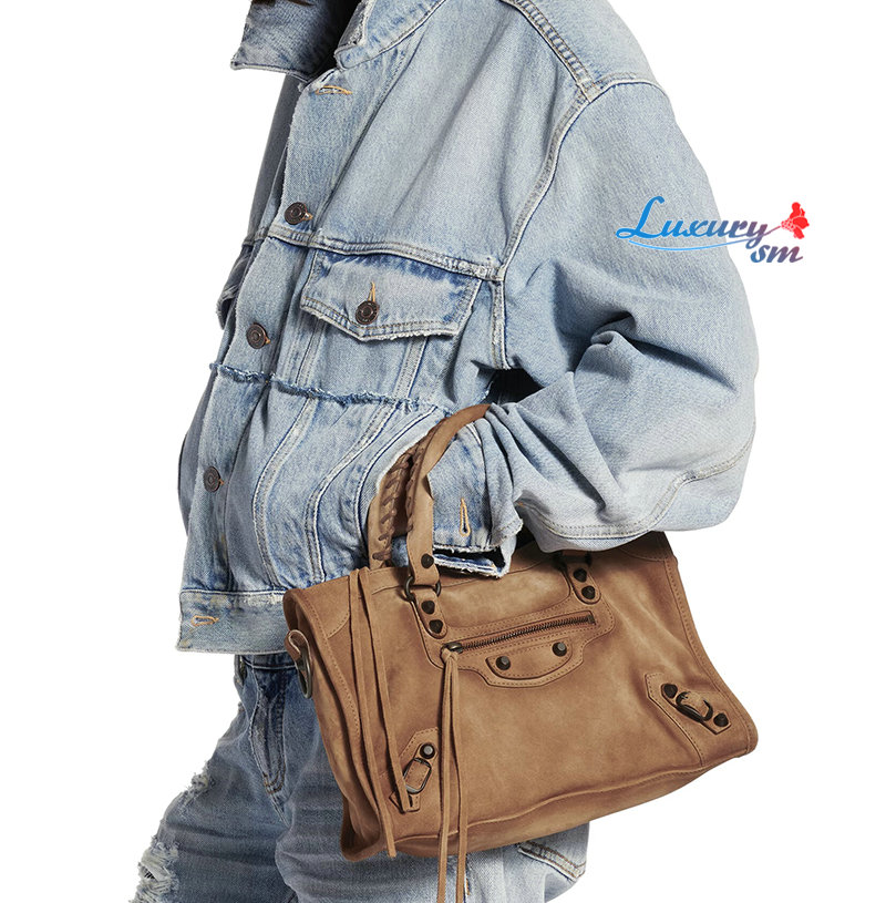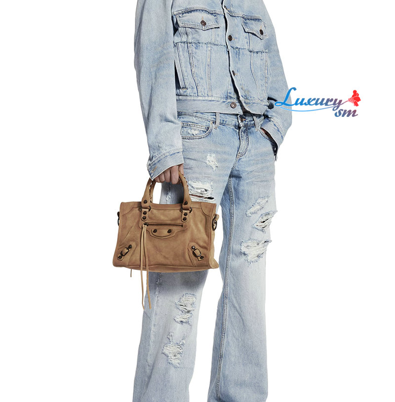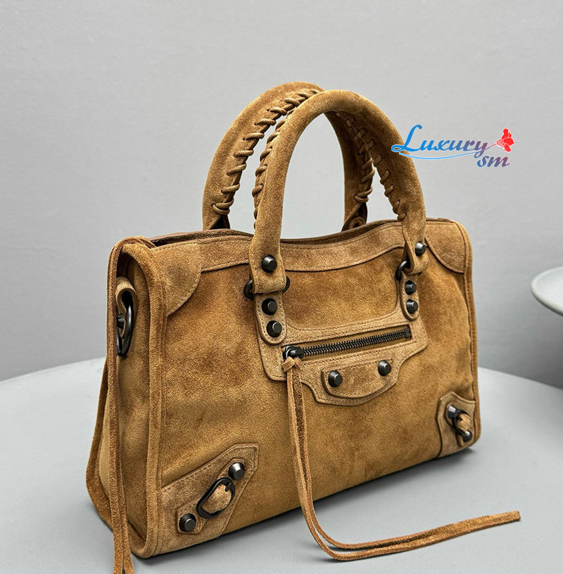 카멜 스웨이드 카프스킨 소재의 르 시티 백 스몰, 브라스 장식