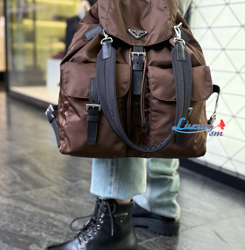 [스페셜오더]PRADA-2VZ110 프라다 흑갈색 리나일론 백팩(패브릭 스트랩)
