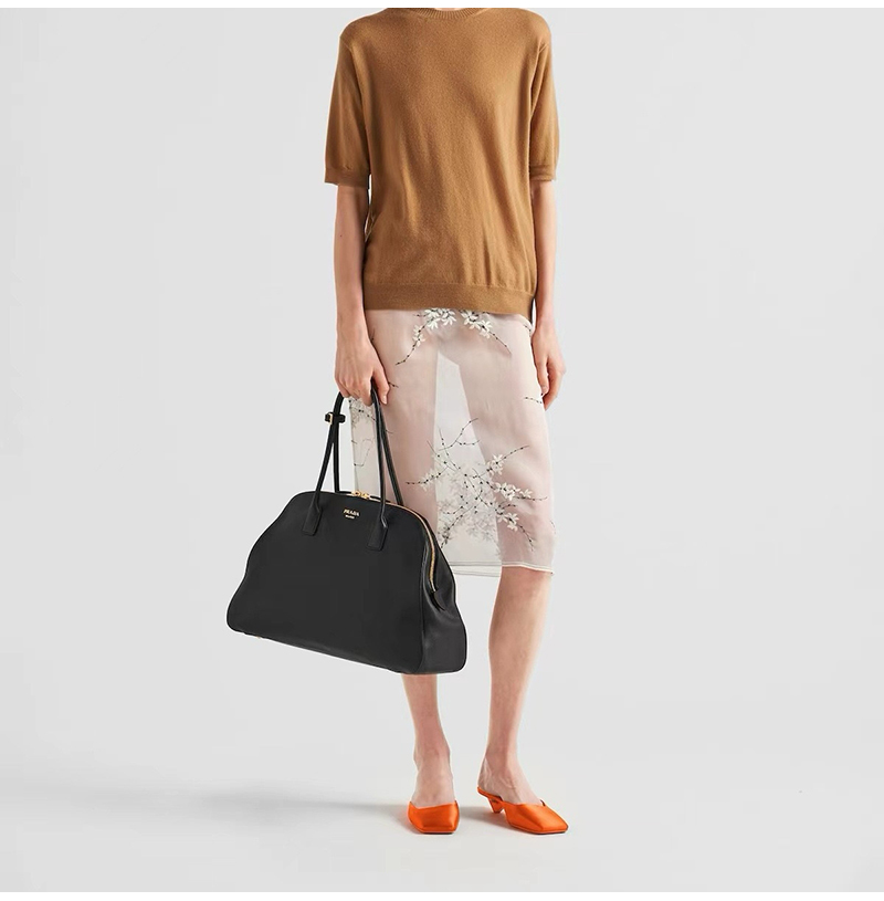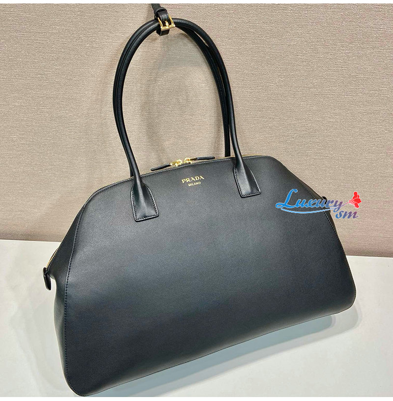 [스페셜오더]PRADA-1BG506 프라다 소프트 그레인 라지 토트백 금장 로고 블랙