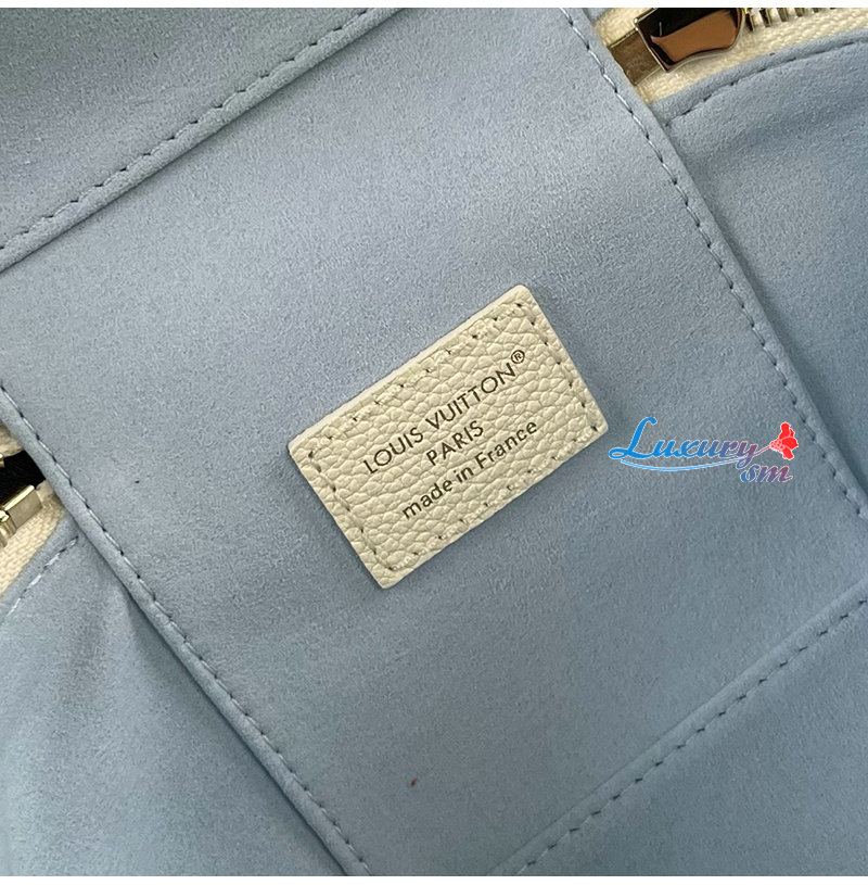 바이컬러 색조의 상징적인 모노그램 앙프렝뜨 가죽 소재.