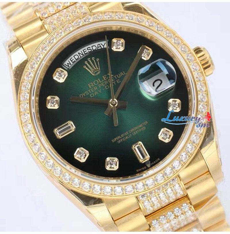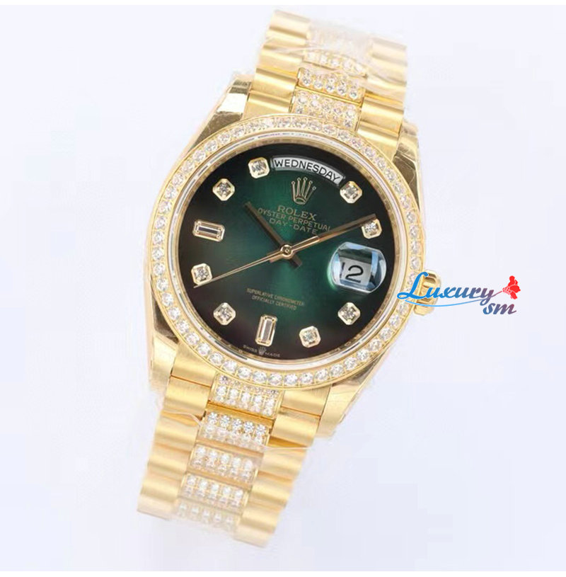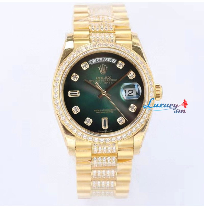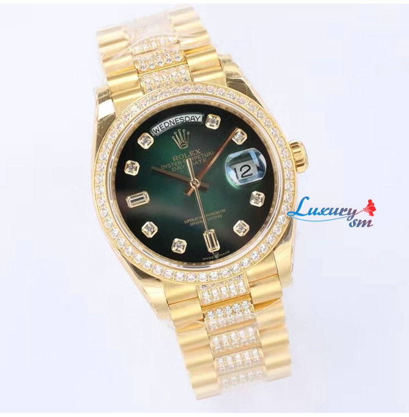 [스페셜오더][RA Factory]ROLEX-128348 롤렉스 데이-데이트 터콰이즈 옐로우 골드 다이아몬드 파베 다이얼 36mm 가격 : 1,080,000원