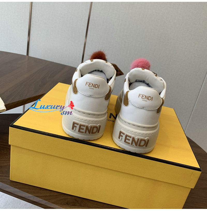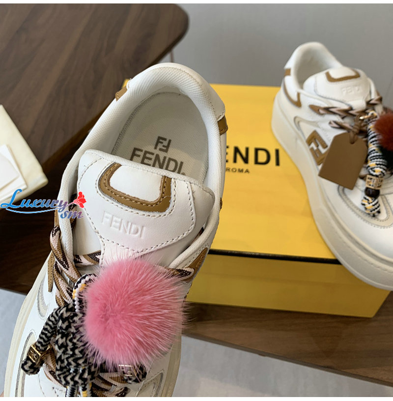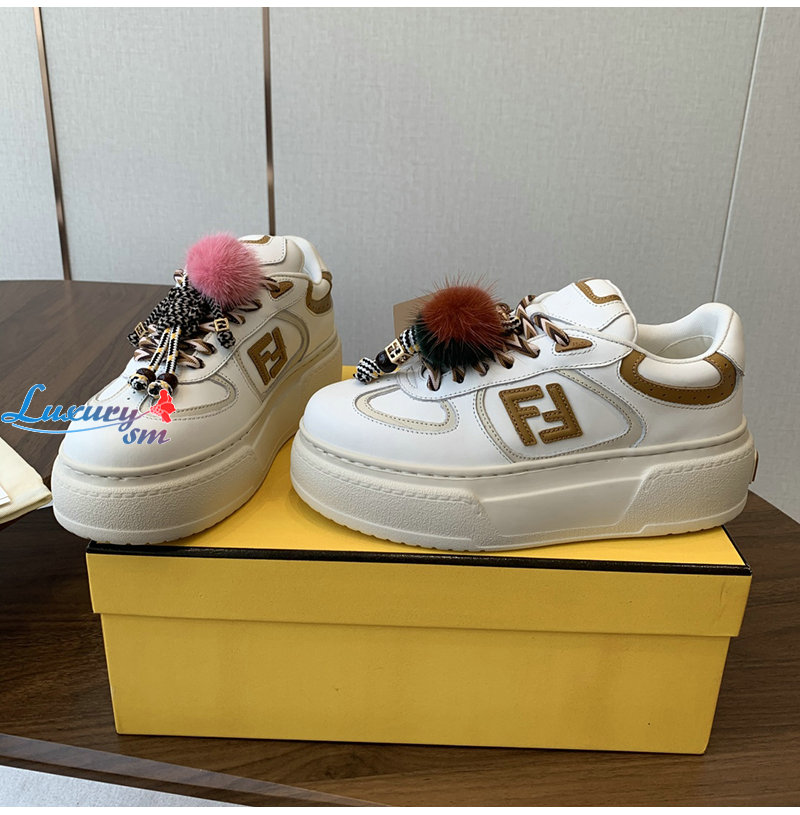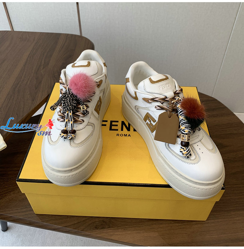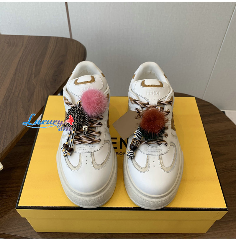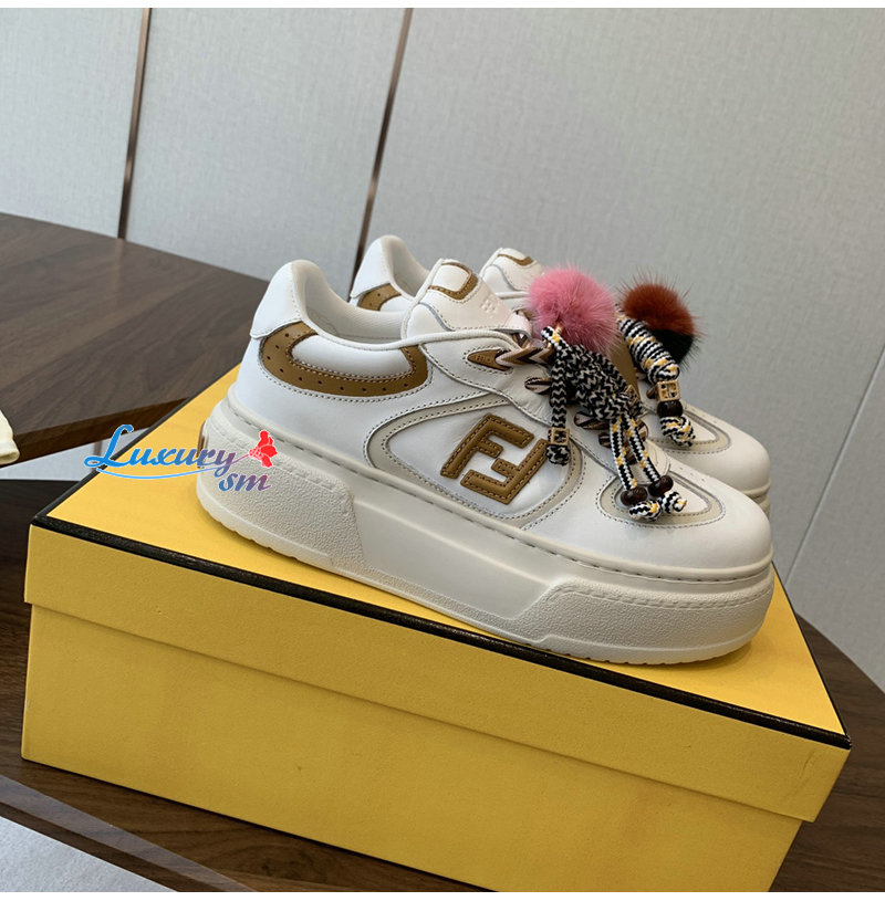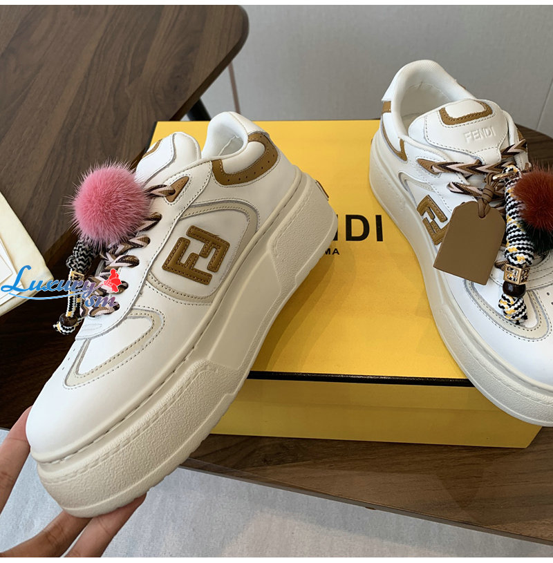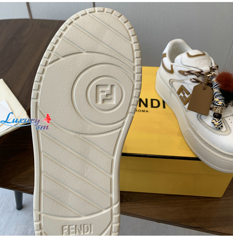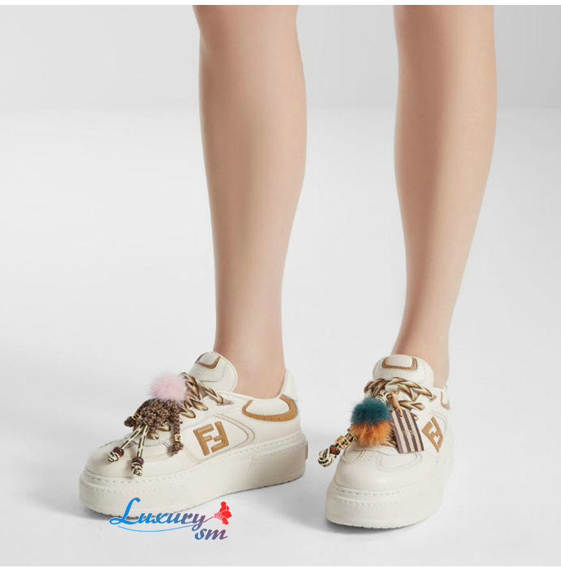 FENDI-8E8721 펜디 화이트 가죽 펜디 매치 로우탑 플랫폼 참 슈즈 여성용