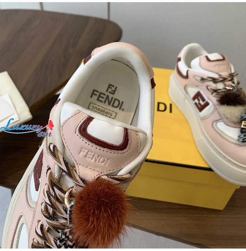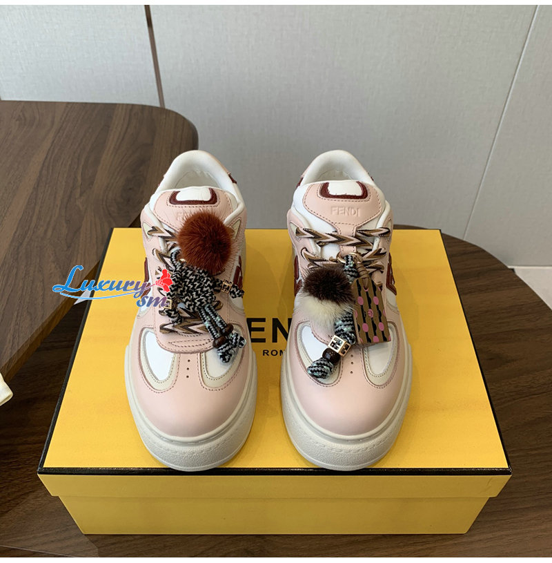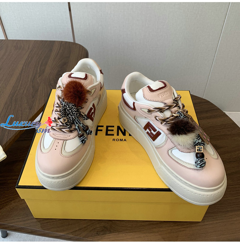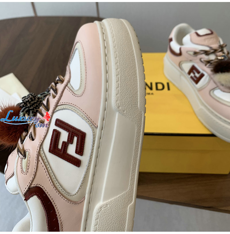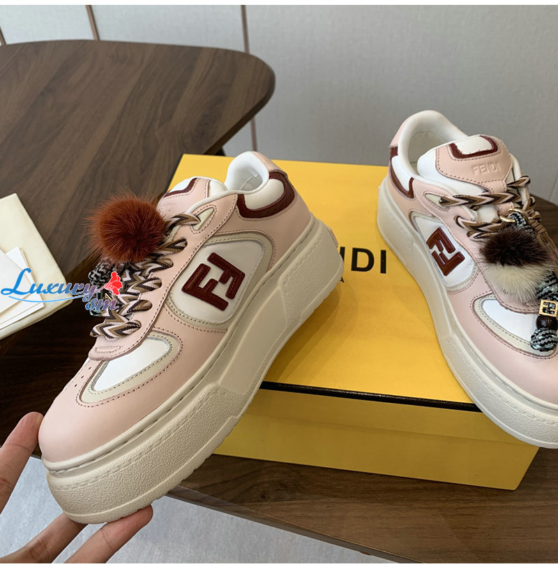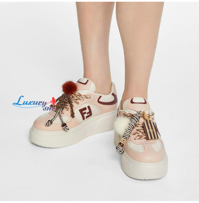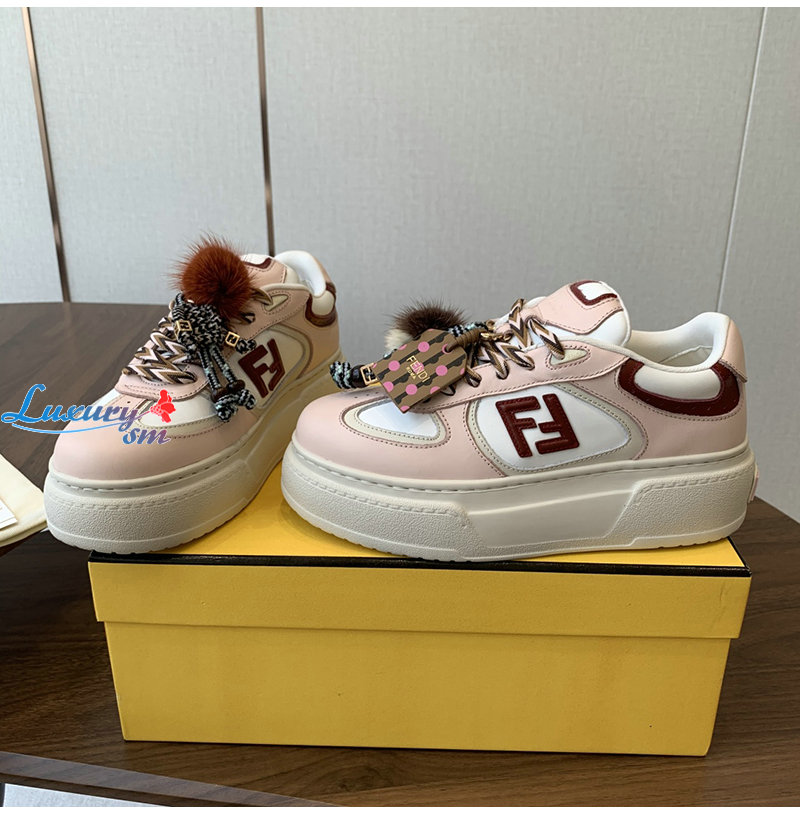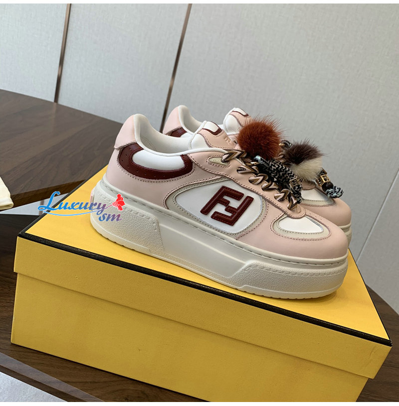 FENDI-8E8721 펜디 핑크 가죽 펜디 매치 로우탑 플랫폼 참 슈즈 여성용