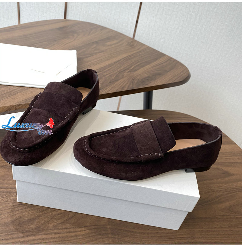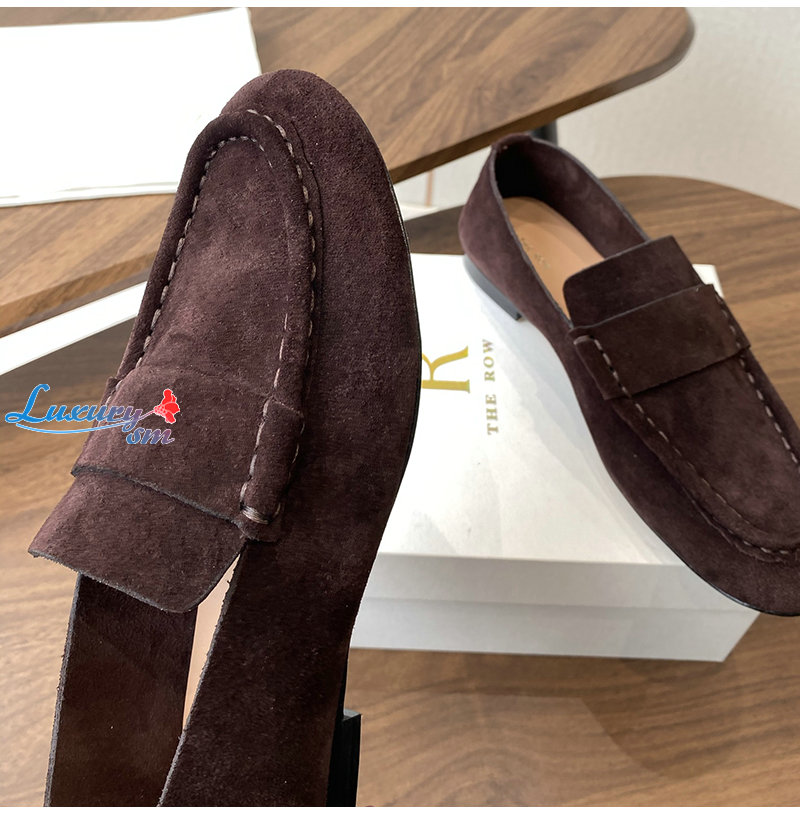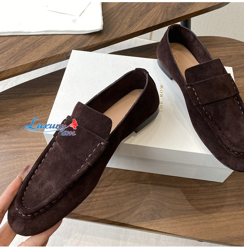THE ROW-F1626L3 더 로우 브라운 Soft 스웨이드 모카신 여성용