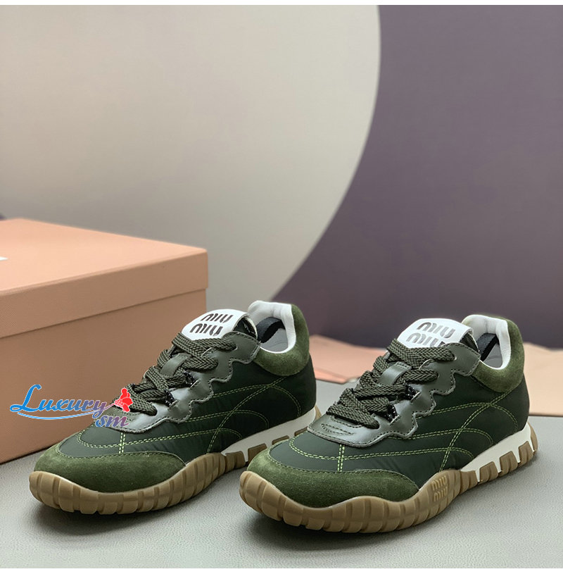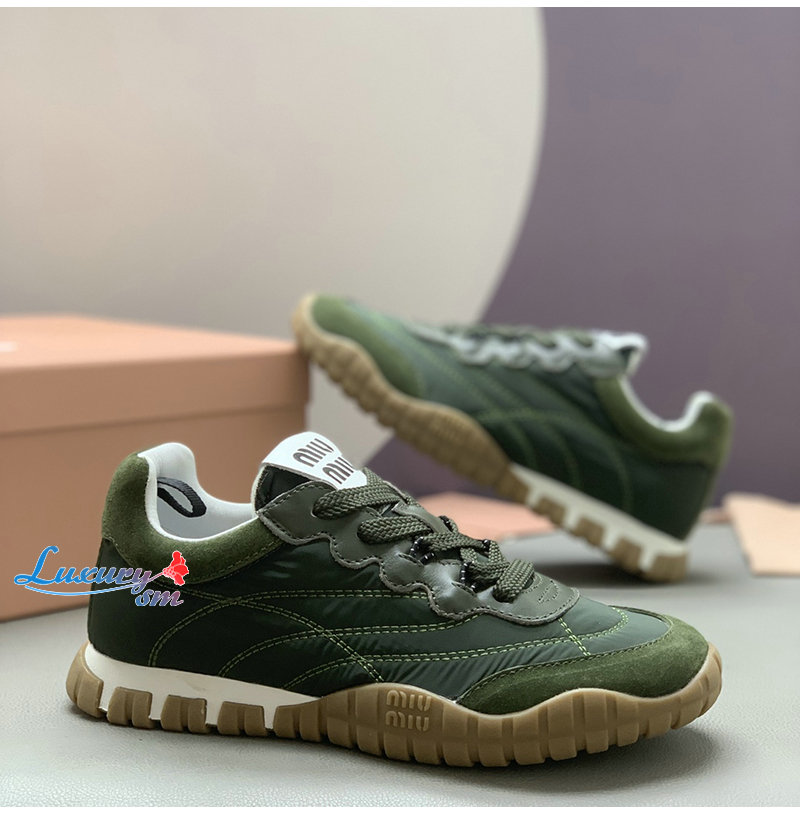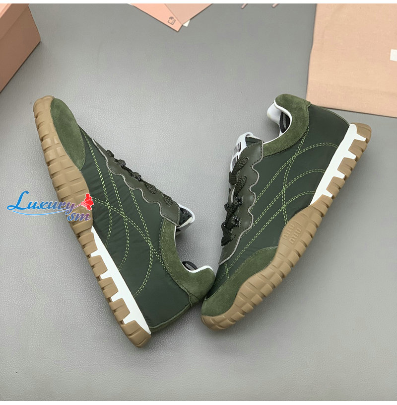 MIUMIU-5E417E 미우미우 그린 타이어 기능성 소재 스웨이드 스니커즈 여성용