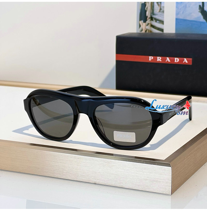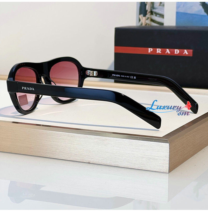 템플은 에나멜 프라다 로고로 장식되어 있습니다.