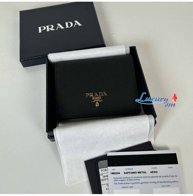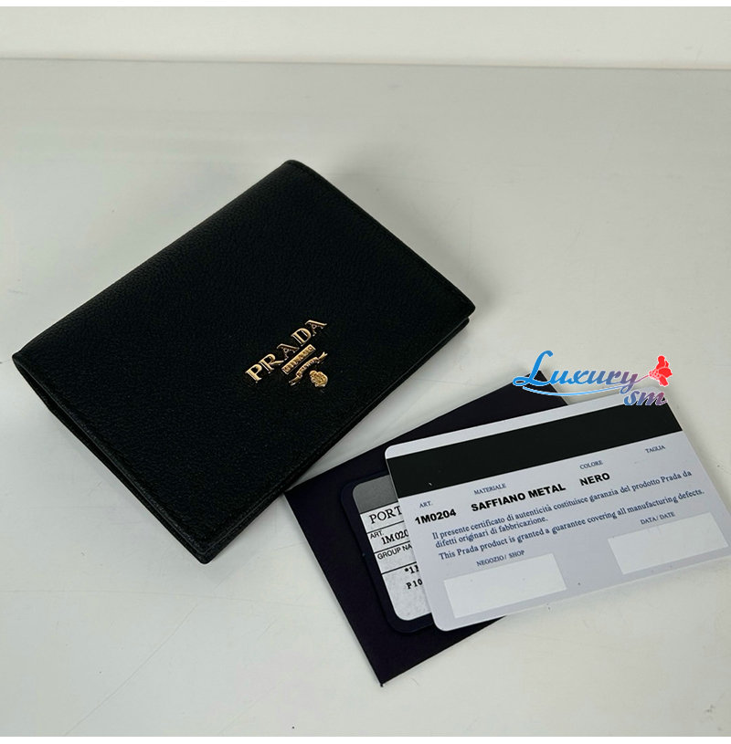 [스페셜오더]PRADA-1M0204 프라다 송아지가죽  메탈 로고 카드 지갑 블랙