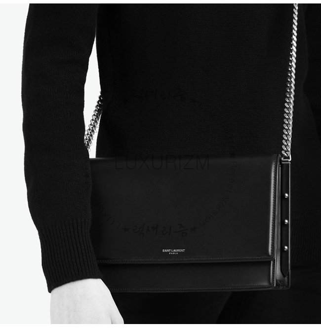 플랩 양각으로 새겨진 생 로랑 시그니처 2개의 중앙 수납 공간 탈부착