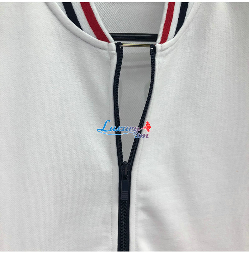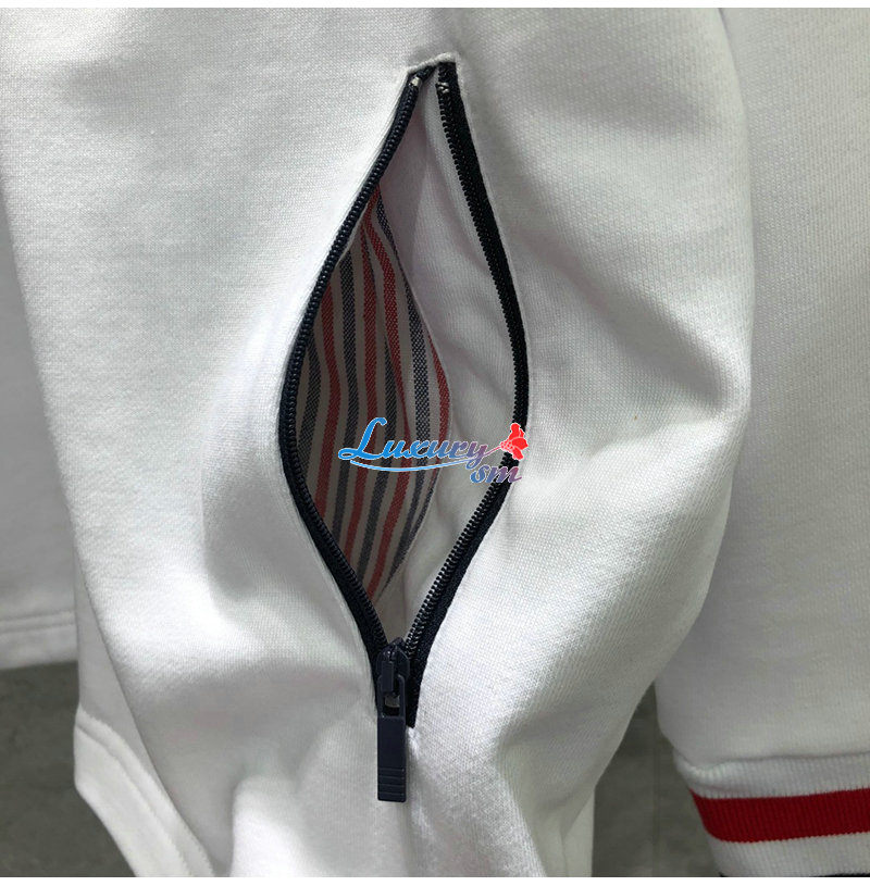 THOM BROWNE-08206 톰 브라운 화이트 스트라이프 장식 스웨트 재킷 남성용