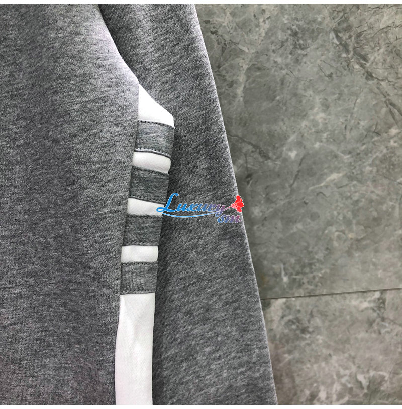 THOM BROWNE-08208 톰 브라운 그레이 스트라이프 장식 스웨트셔츠 남성용