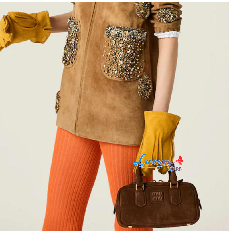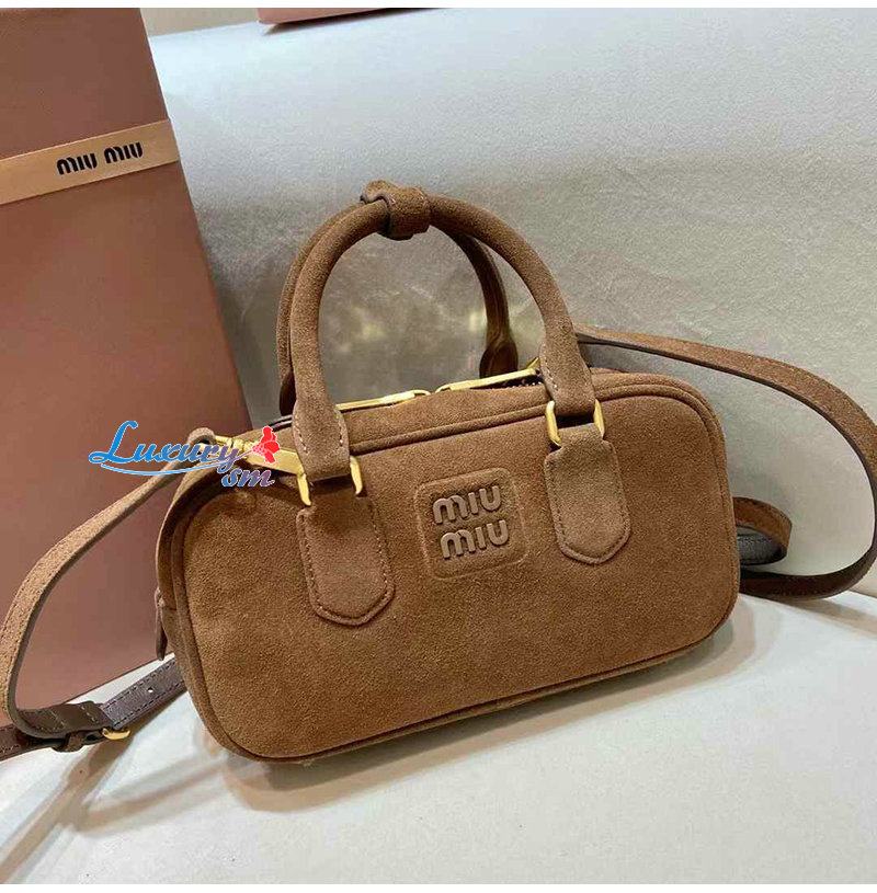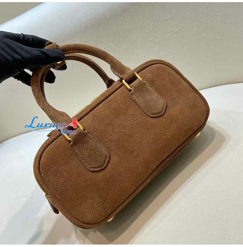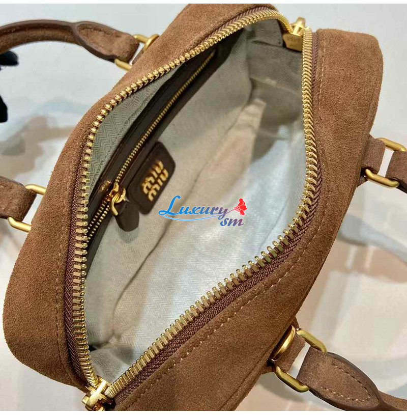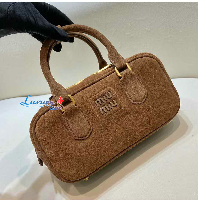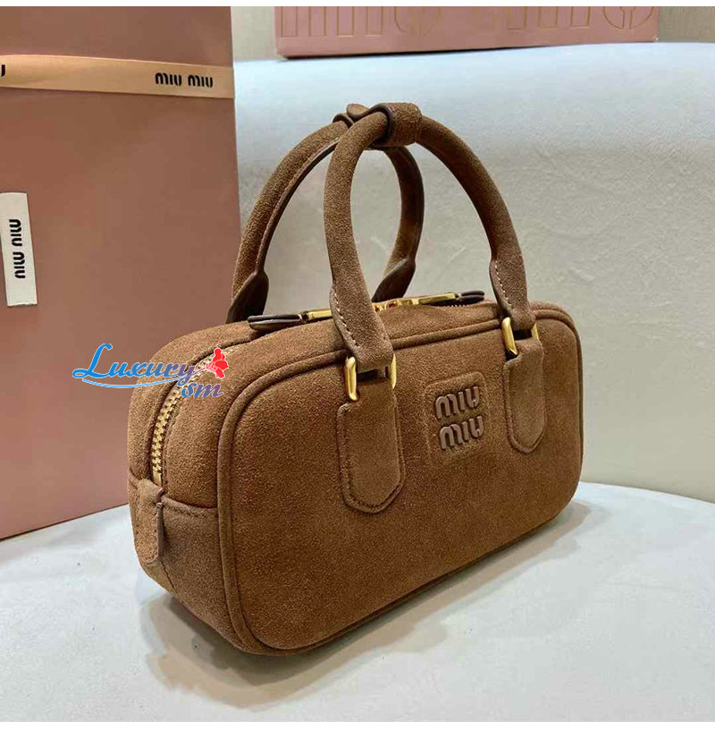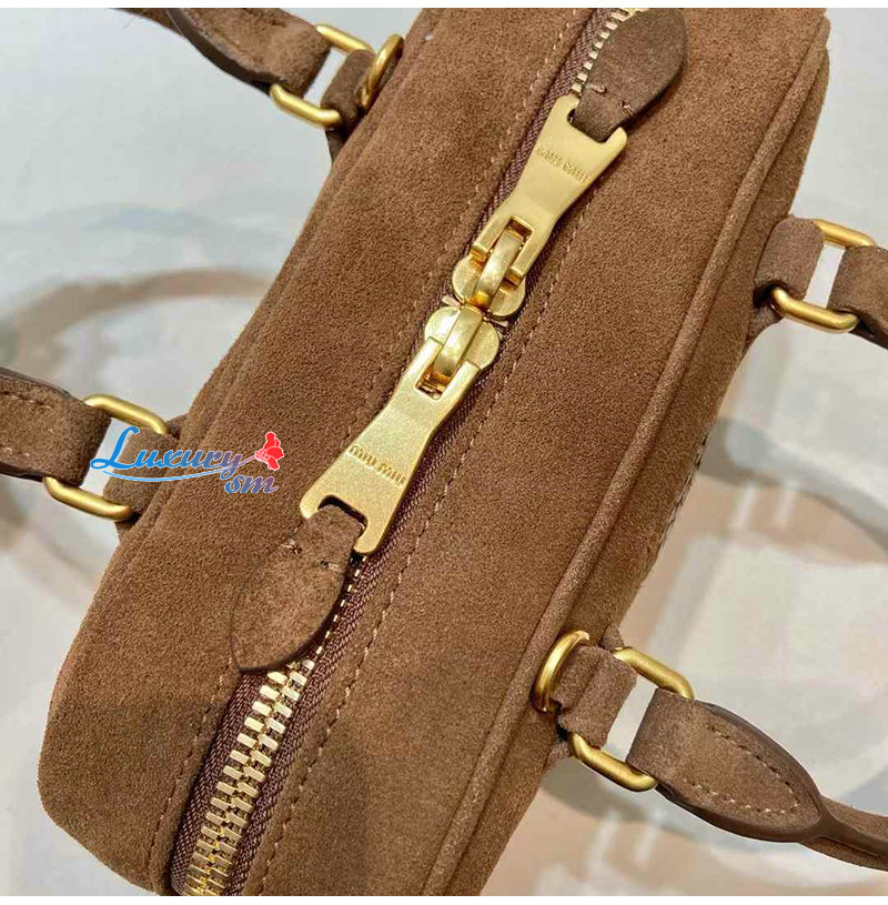 [스페셜오더]MIUMIU-5BB142 미우미우 브라운 아르카디 패딩 스웨이드 탑 핸들 백
