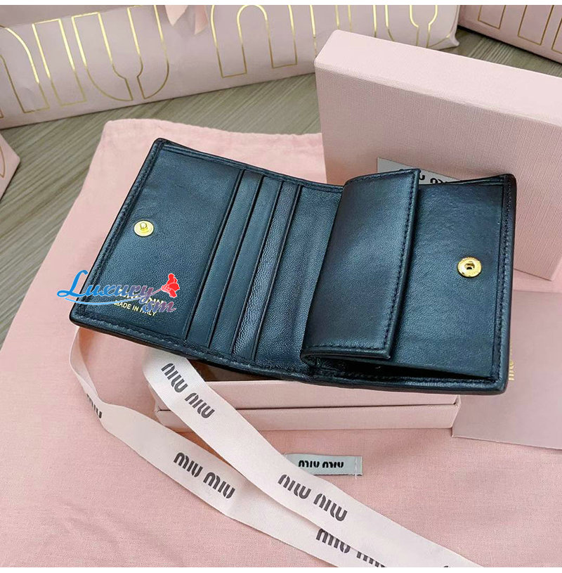 [스페셜오더]MIUMIU-5MV204 미우미우 블랙 마테라쎄 나파 가죽 반지갑