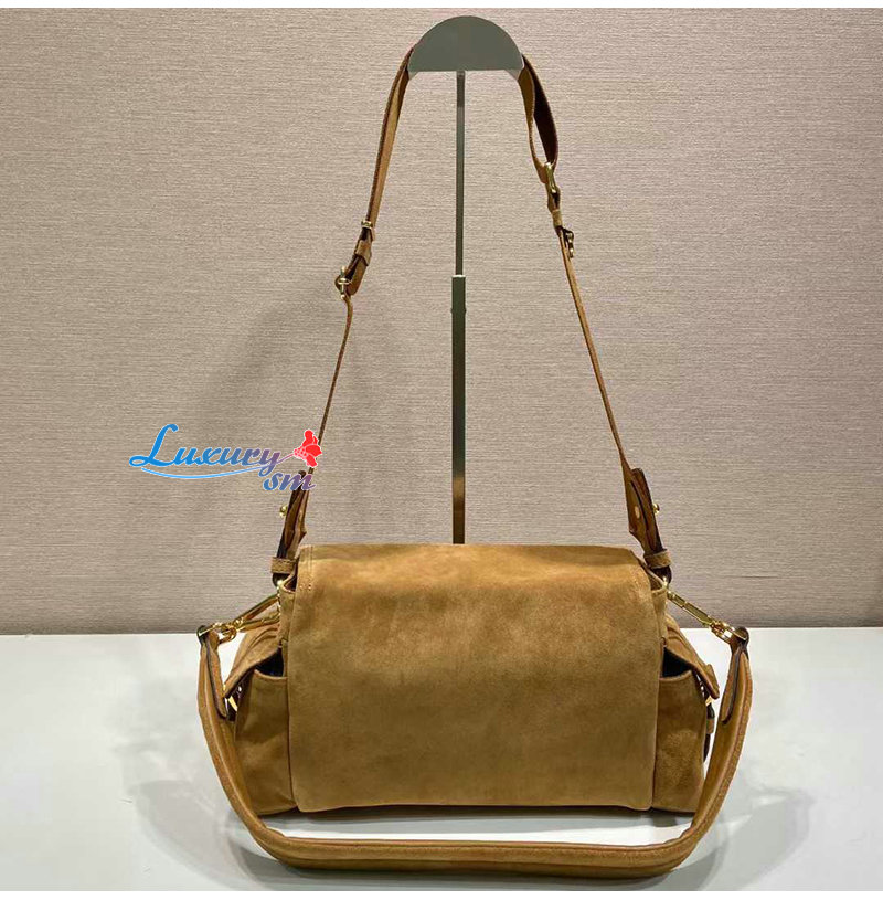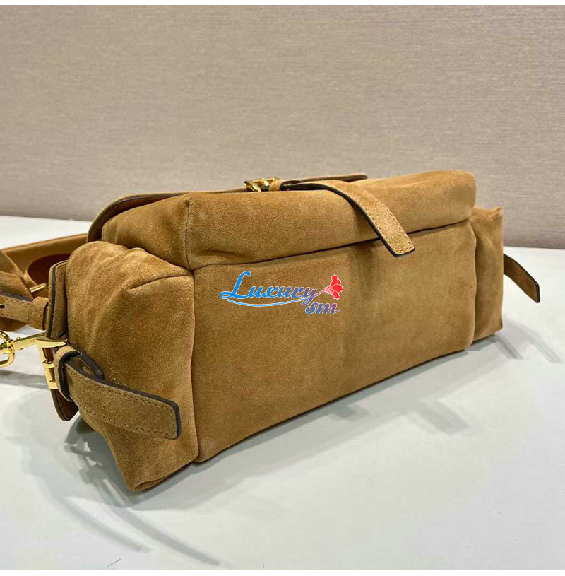 [스페셜오더]PRADA-1BD394 프라다 시나몬 익스플로어 미디엄 스웨이드 숄더 백