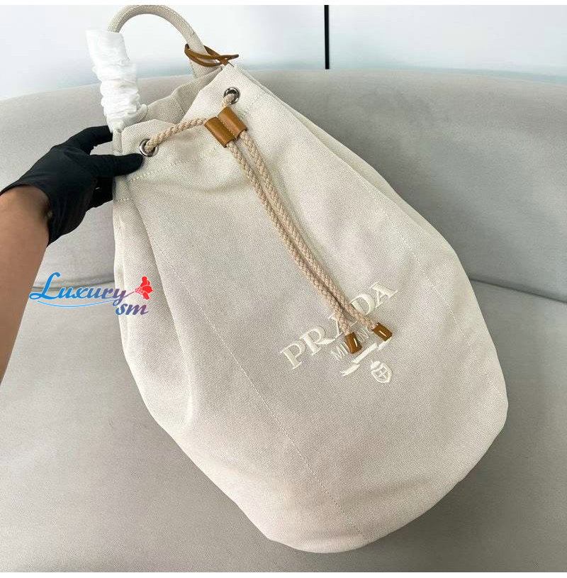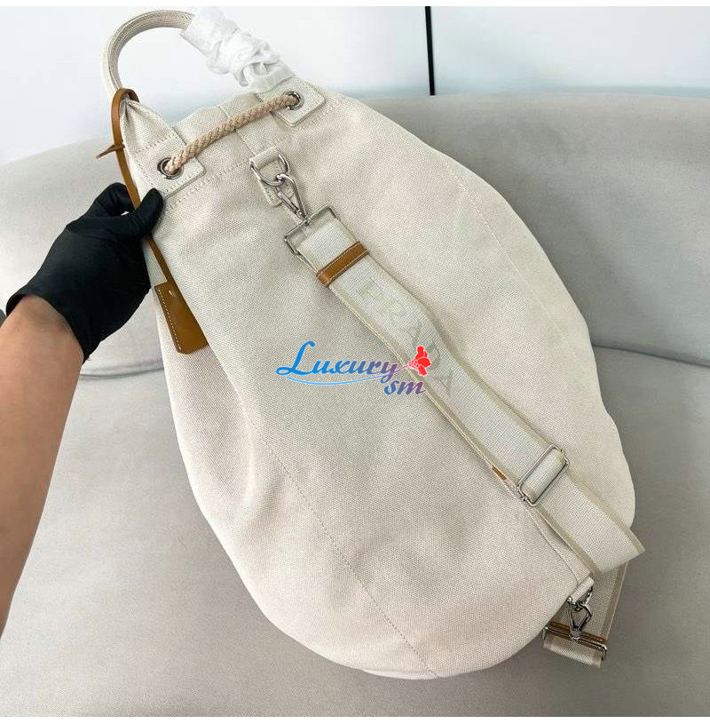 [스페셜오더]PRADA-2VY011 프라다 화이트 캔버스 드로스트링 더플백