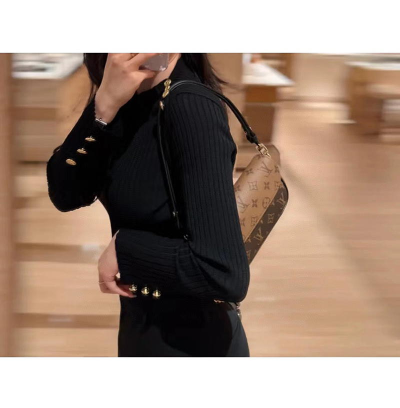 모노그램 리버스 캔버스 소재. 골드 색상의 탈착형