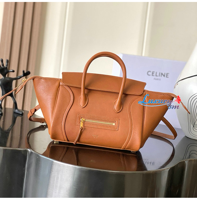 [스페셜오더]CELINE-124213 셀린느 스몰 뉴 러기지 서플 샤이니 램스킨 브라운